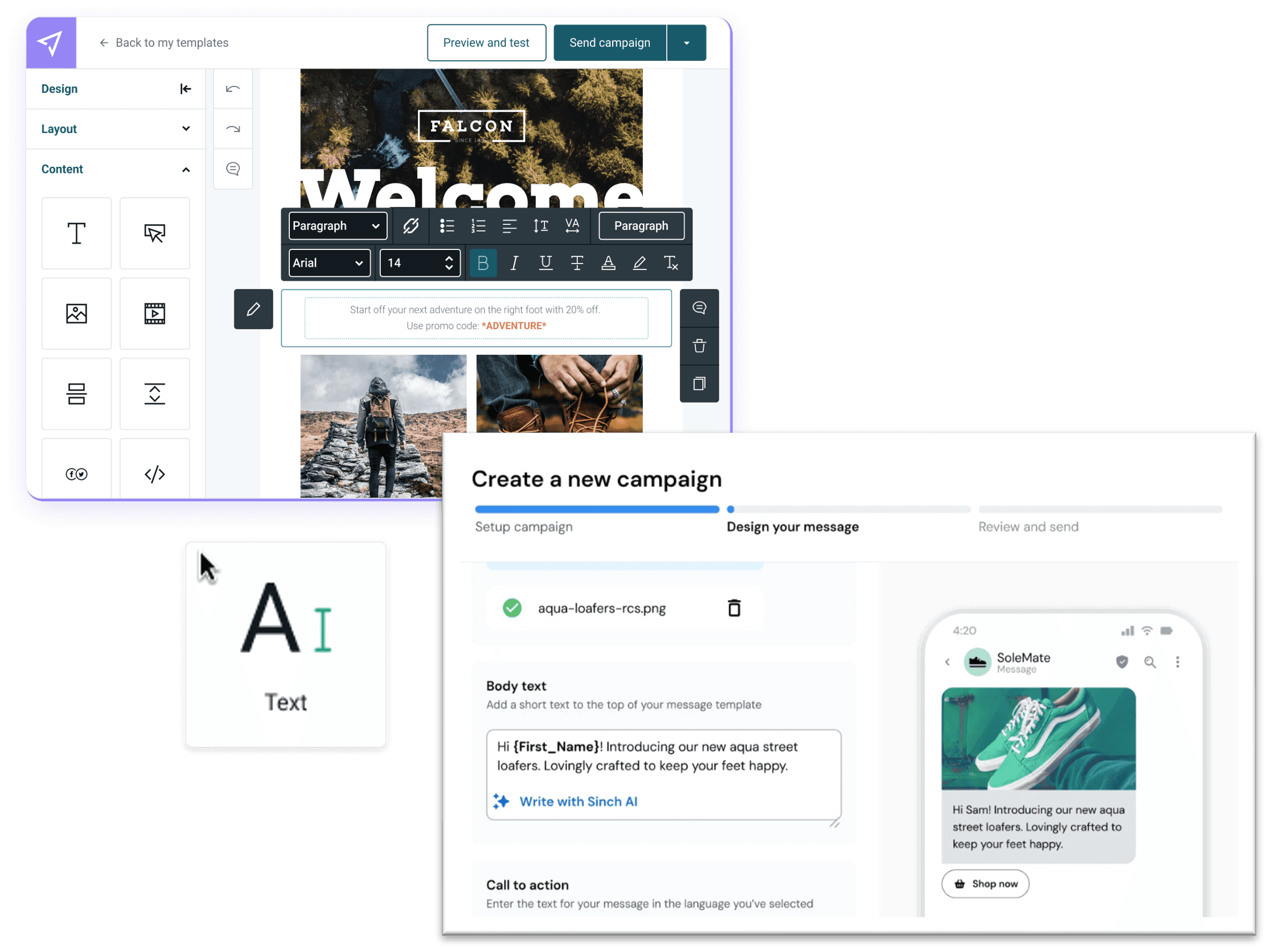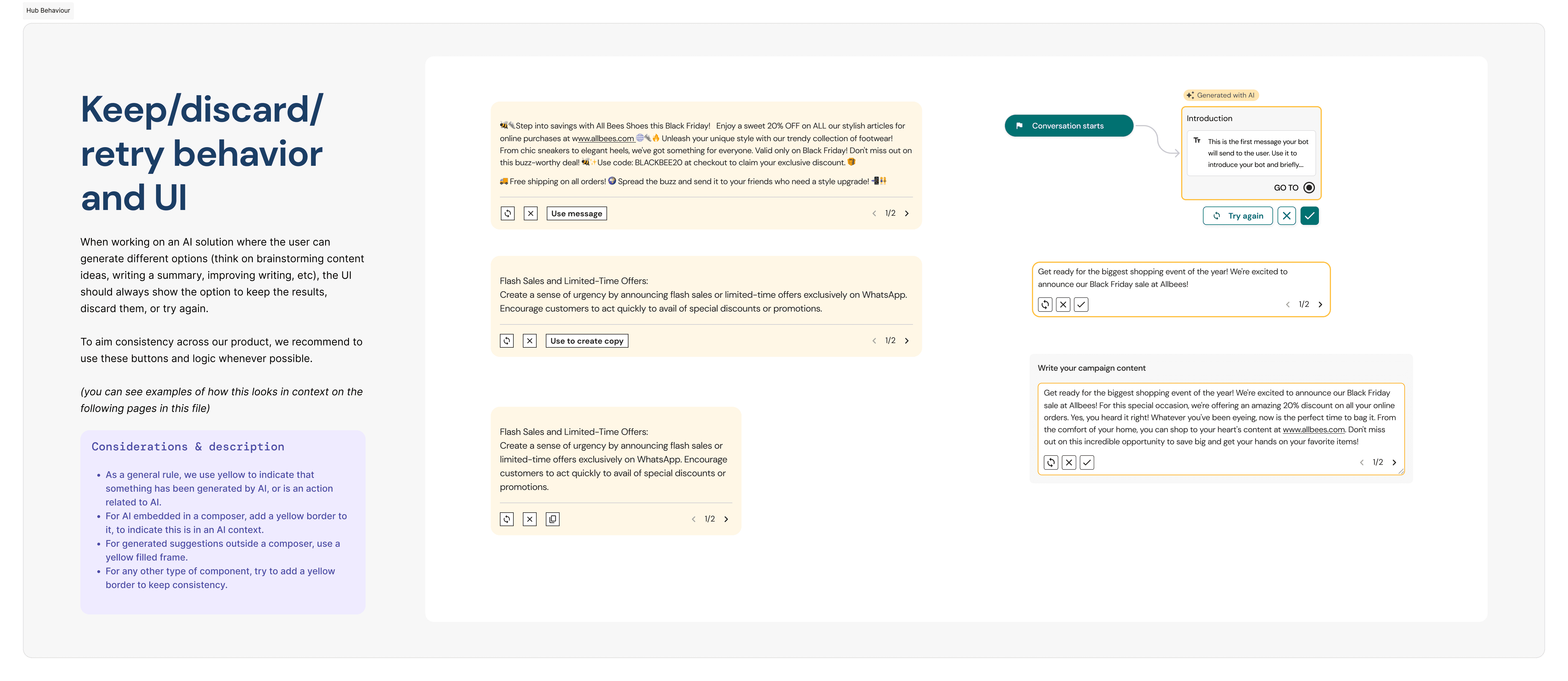 I owned the end-to-end design of the AI generation experience — from the moment a user decides to use AI, through to a campaign they’re confident enough to send.