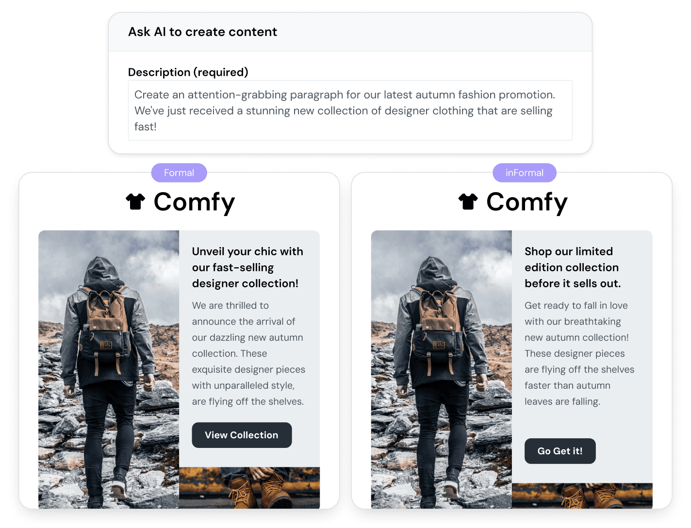 Early testing showed that overly polished, AI-sounding copy reduced users’ willingness to edit. It felt authoritative in the wrong way. When we shifted toward warmer, more marketer-like language — the kind of tone a good copywriter might use — users were more likely to engage with the content, tweak it, and ultimately send it. The language had to feel like theirs to touch.