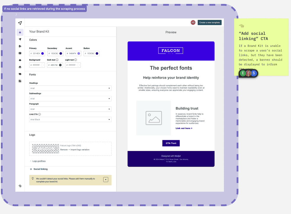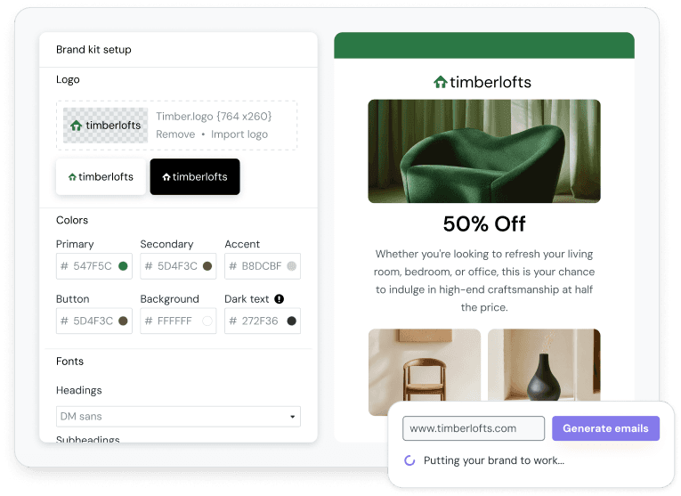 Mailjet’s original Brand Kit was powered by Clearbit. Users dropped in a company URL, the system detected colors and fonts, and generated a small set of branded templates. Useful as a starting point — but the moment you closed that flow, your brand was gone. There was nowhere for it to live.