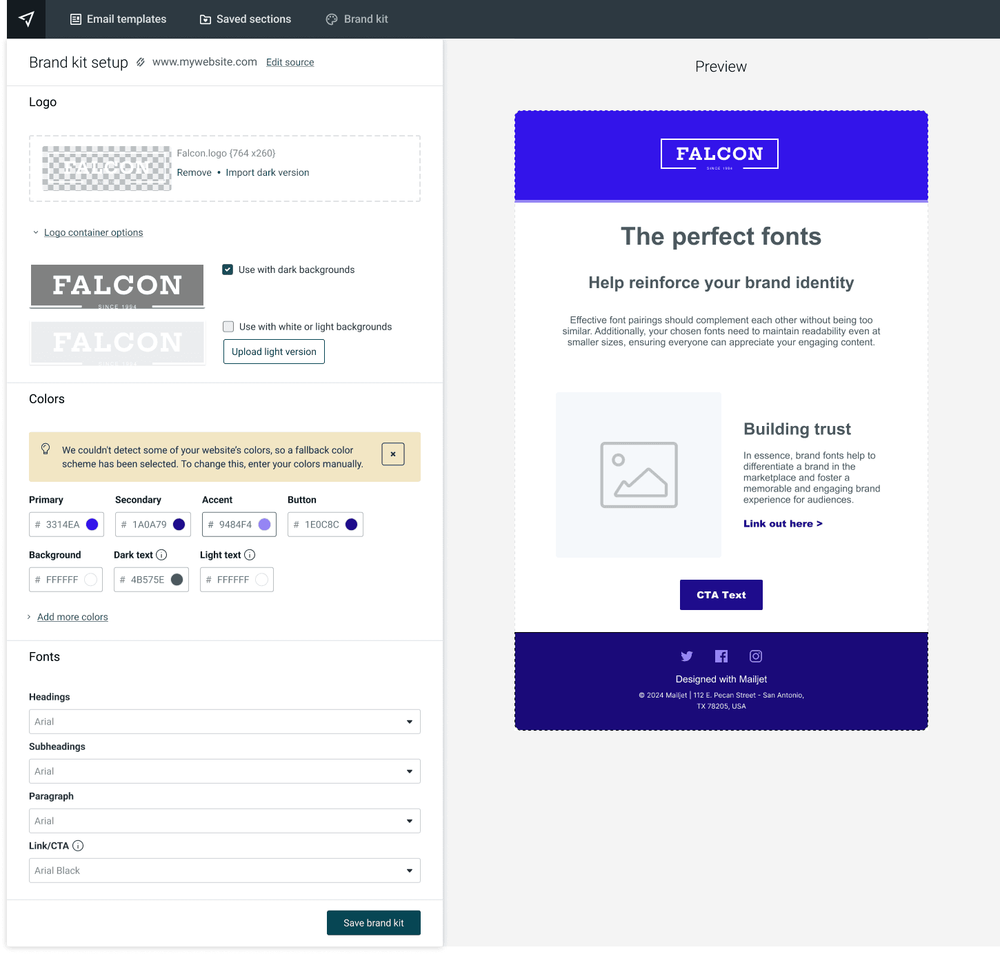 💡 Fallback color scheme based on Mailjet colors