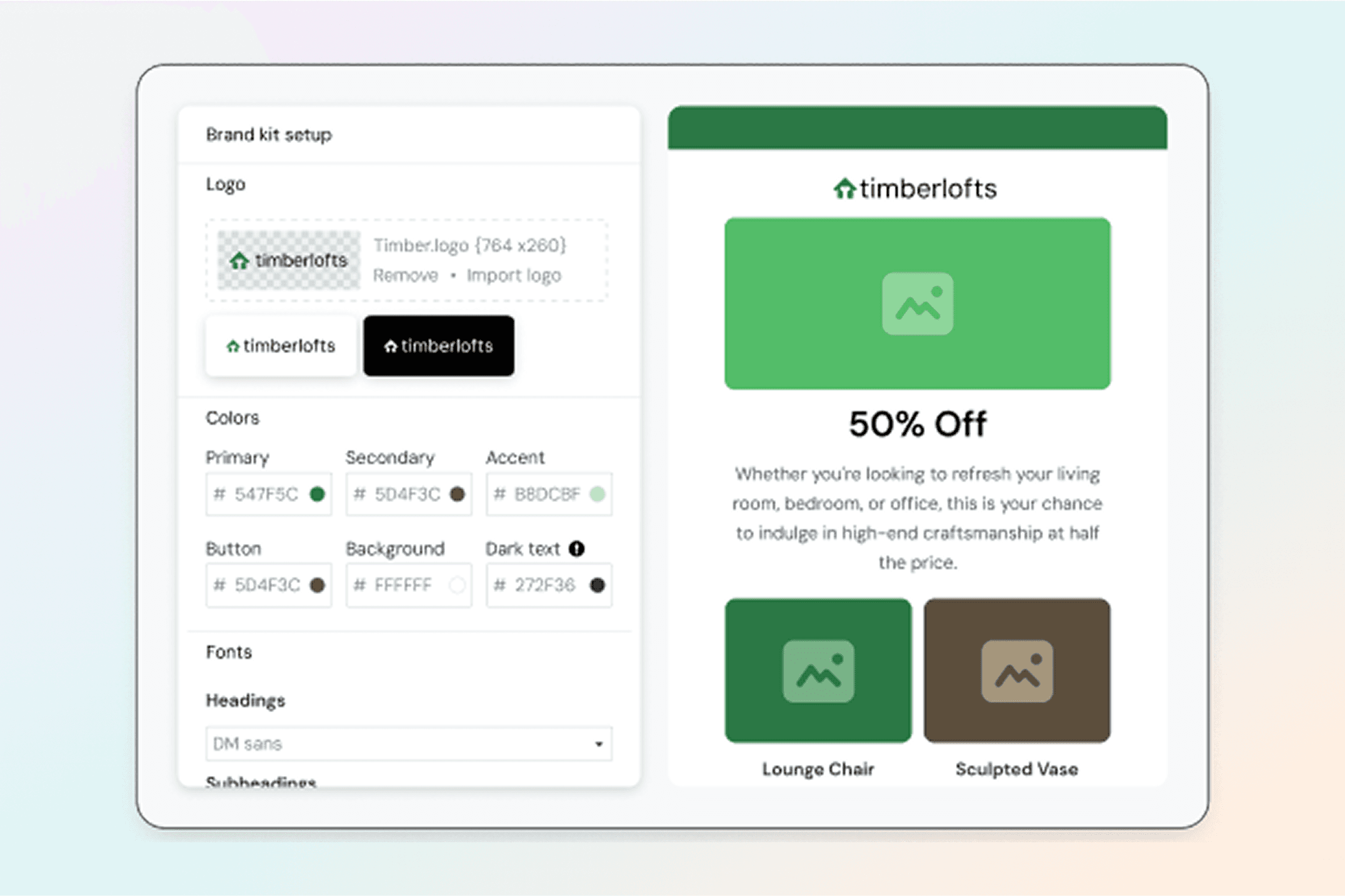 When no Brand Kit exists, builders fall back to neutral, accessible defaults that preserve usability without forcing setup—allowing users to explore and create confidently before committing to brand configuration.